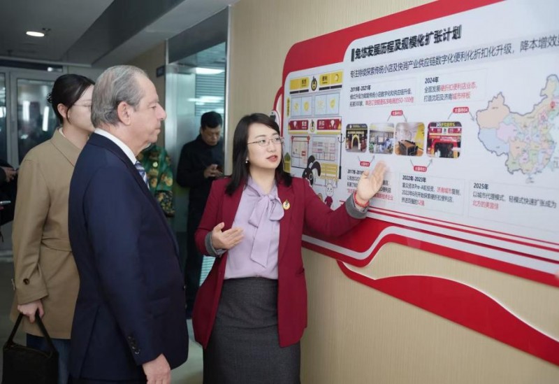 在尹景怡女士的陪同下,贡齐阁下参观了兔悠总部,系统聆听了公司的发展历程、团队文化建设及未来战略布局。他对兔悠科技在发展中构建的清晰核心竞争力深表赞叹,尤其认可兔悠将“硬折扣模式”与“数字化智能”深度融合的独特路径,直言这一创新精准把握了现代零售业的发展命脉。