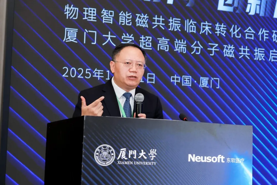 厦门大学副校长尤延铖教授在致辞中表示,厦大始终聚焦国家重大需求,在磁共振基础研究与跨学科融合领域积淀深厚,此次与东软医疗等企业的合作,将充分发挥高校科研与人才优势,推动创新成果更快服务临床。