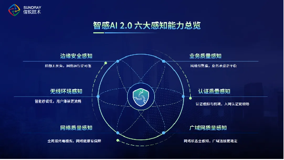 在边缘智能方面,信锐在2021年首次发布智感AI 1.0技术下的产品“Turbo Sense智感AI系列AP”,实现最接近用户侧的射频质量、网络质量和无线安全感知能力。解决用户无线使用中网络质量不可知痛点、打破传统无线网络运维及仅靠经验优化的模式,引领无线进入智感新时代。2022年,信锐迭代推出了智感AI 2.0技术(图一),将感知能力增强扩展至六大,进一步实现用户真实业务体验水平感知的跨越。每一颗Turbo Sense智感AI系列AP都融入了一颗独立AI芯片,让每一位用户的无线网络“安全稳定看得见”。目前,Turbo Sense智感AI系列AP累计销售颗数40W+,服务用户8000+。在边缘智能的引领下,信锐于2023年正式推出了智感交换机,该系列交换机同样具备独立AI芯片,结合智感AP,真正实现了有线无线一体化的边缘智能化,助力用户快速享受到智能化时代带来的便利。